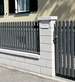 Ihren Zaun fertigen wir in der hauseigenen Werkstatt mit Sichtschutz- od. Zierelementen passend zu Ihrem Haus!